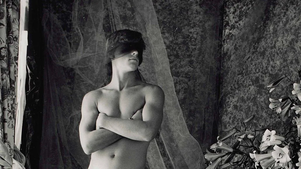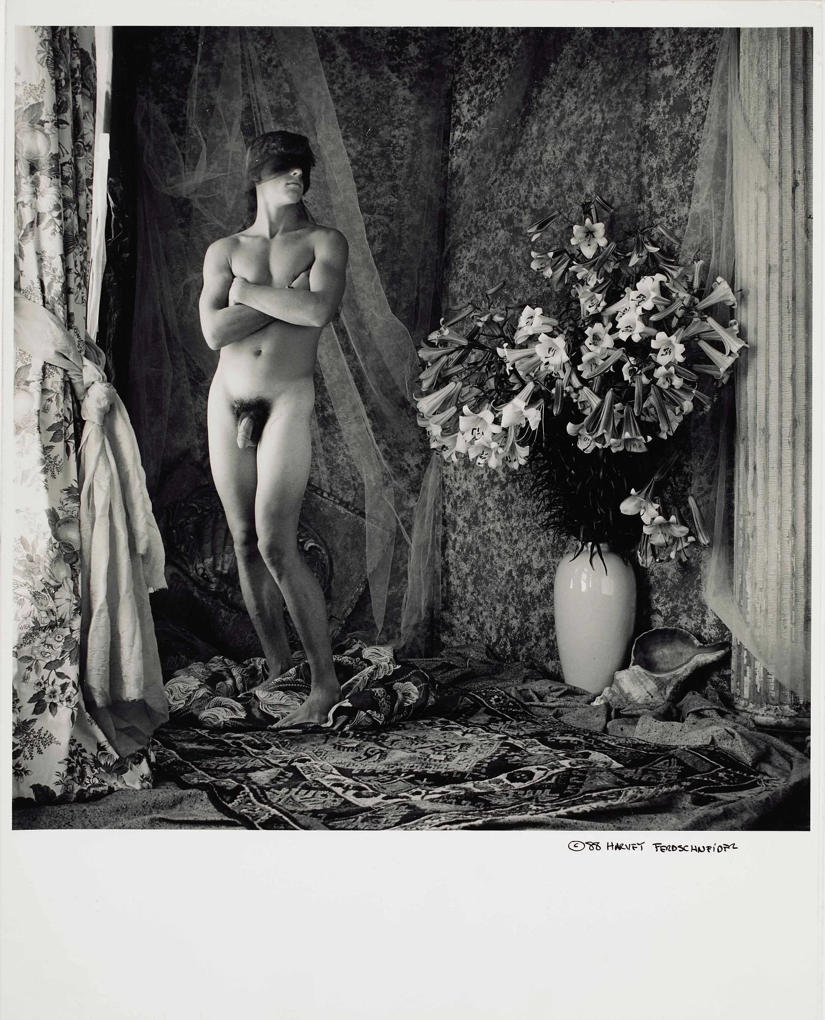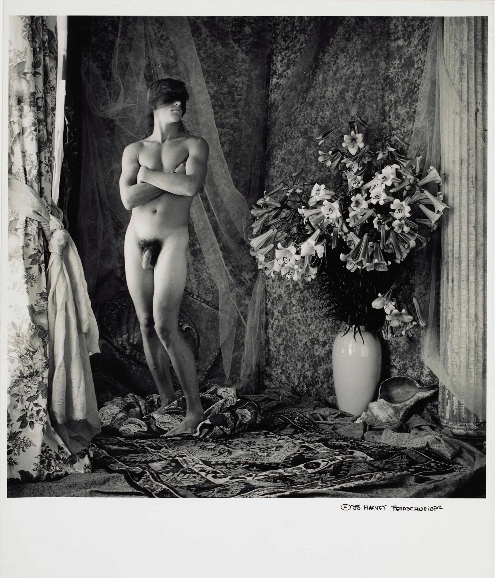 Harvey Ferdschneider. "Michael Blindfolded with Lilies" 1988. Silver gelatin print. Offered in AFTER DARK on 23 April 2026.