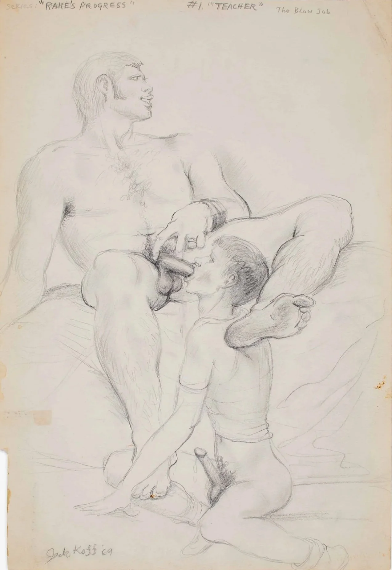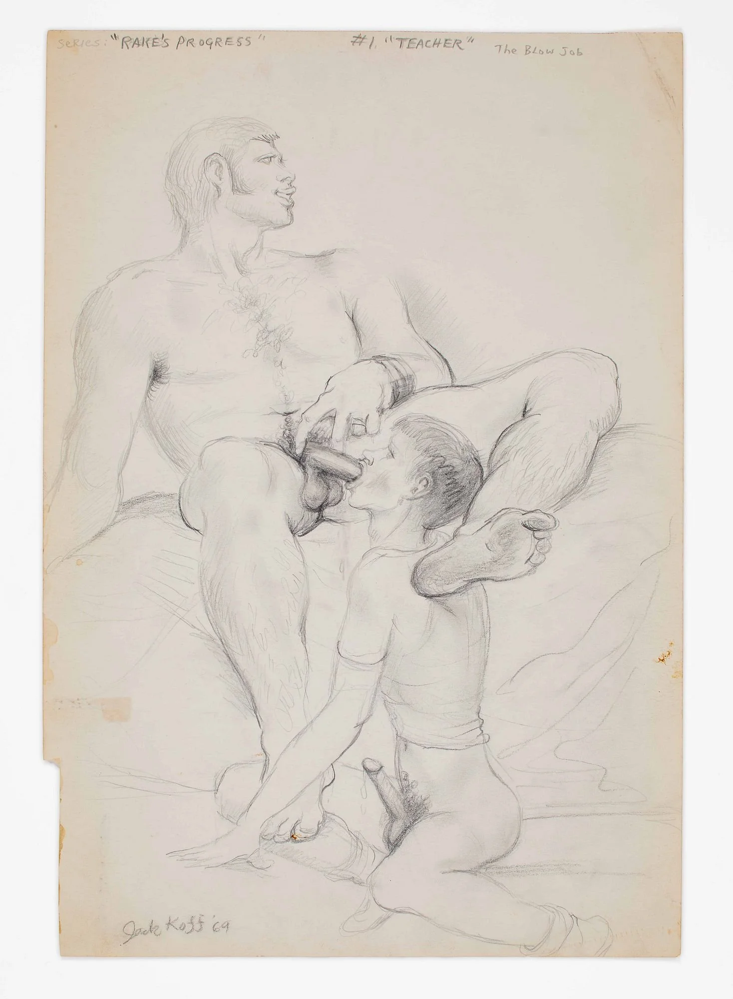 Lloyd Lozes Goff. One of five drawings for the "Rake's Progress Series". 1969-1970. Graphite on paper. Signed by the artist with his pseudonym, "Jack Koff". Offered in AFTER DARK on 6 November 2025