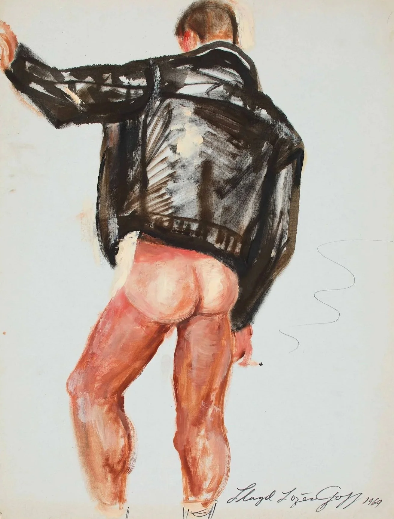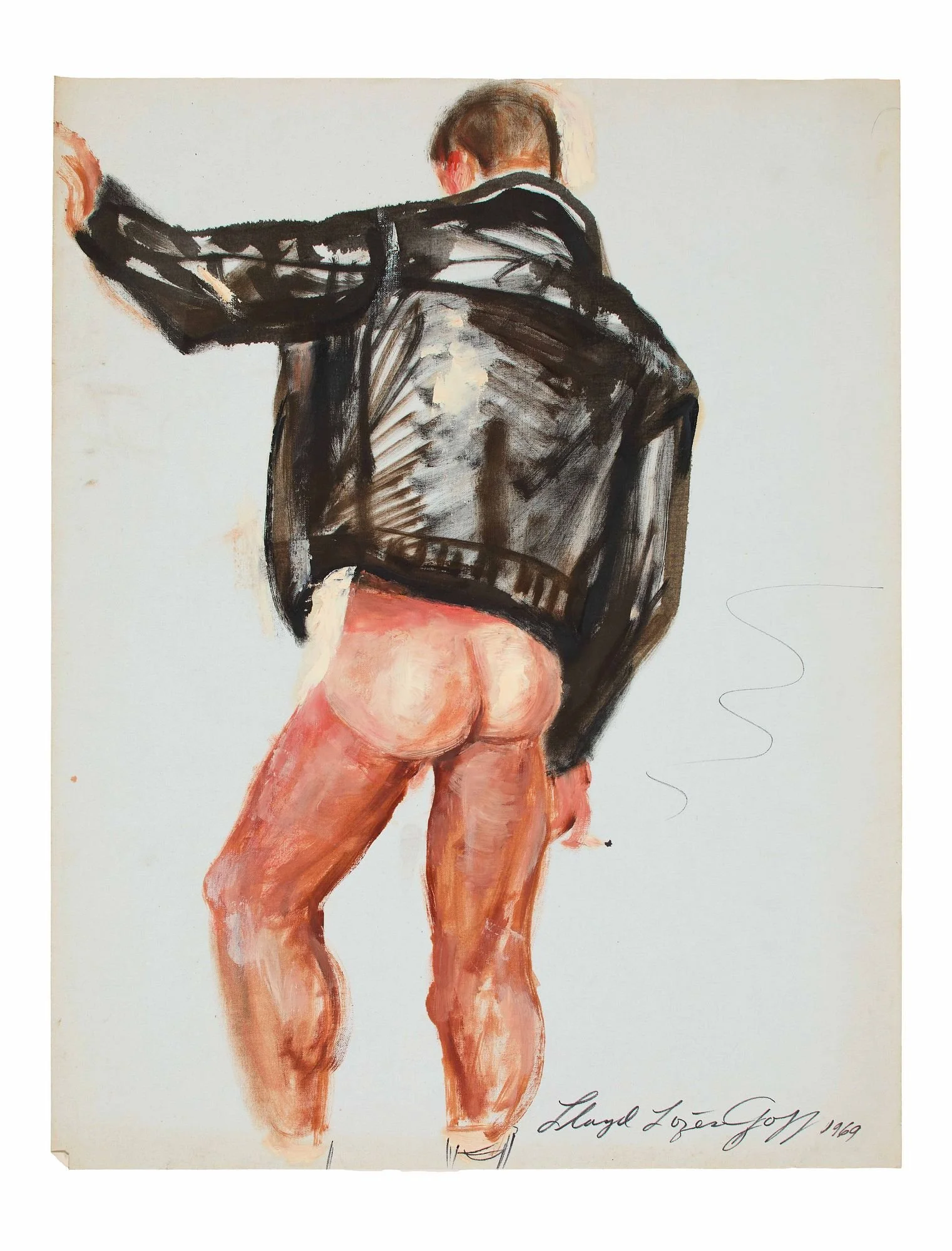 Lloyd Lozes Goff. "Untitled (Leather Man with Bare Ass)." 1969. Oil on paper. Offered in AFTER DARK on 28 April 2026.