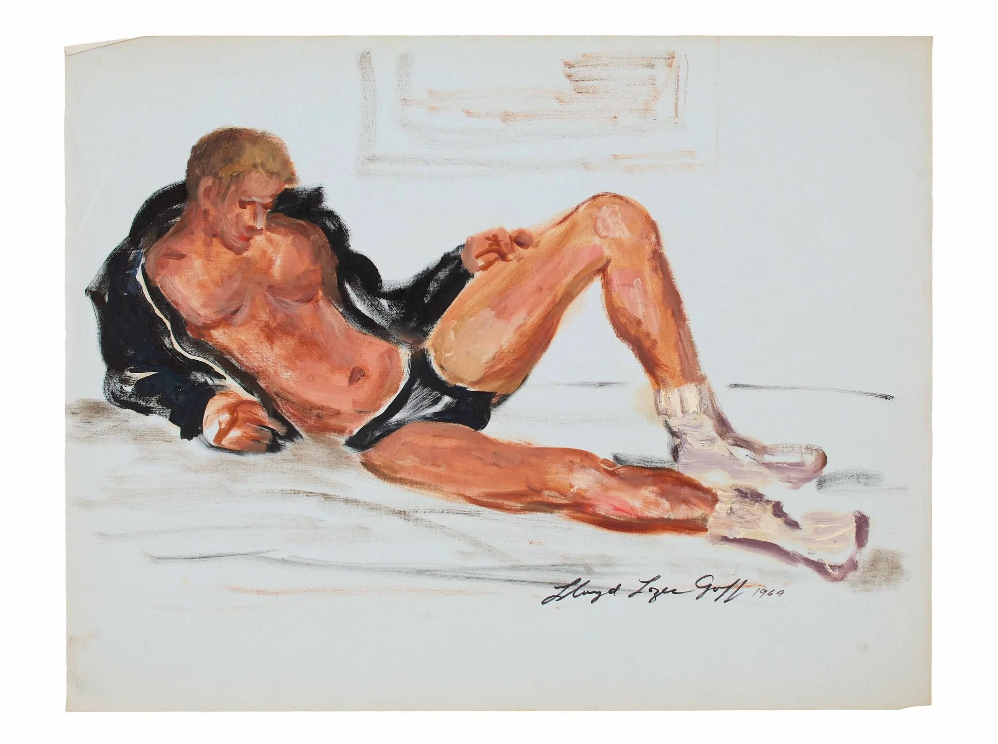 Lloyd Lozes Goff. "Untitled (Reclining Leather Man)". 1969. Oil on paper. Offered in AFTER DARK on 28 April 2026.