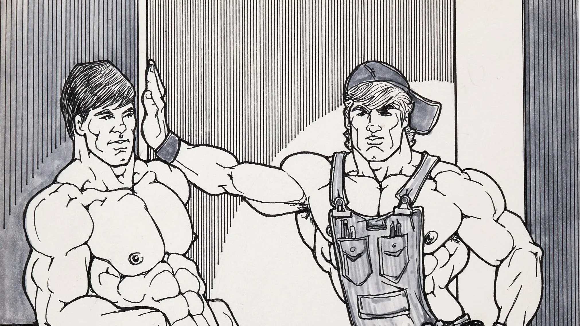 Kerbs’ work celebrated hypermasculine archetypes —cowboys, cops, construction workers, servicemen, sailors and leathermen— rendered in bold lines with exaggerated musculature and often depicted in bondage or erotic scenarios. His illustrations regularly appeared in influential fetish and leather publications including Drummer. Kerbs also designed calendars, posters, book covers and illustrated nearly every issue Honcho published during his lifetime as well as the short-lived Foreskin Quarterly magazine. Toward the end of his career, Kerbs began self-publishing mail-order portfolios of his drawings and adult comic books.