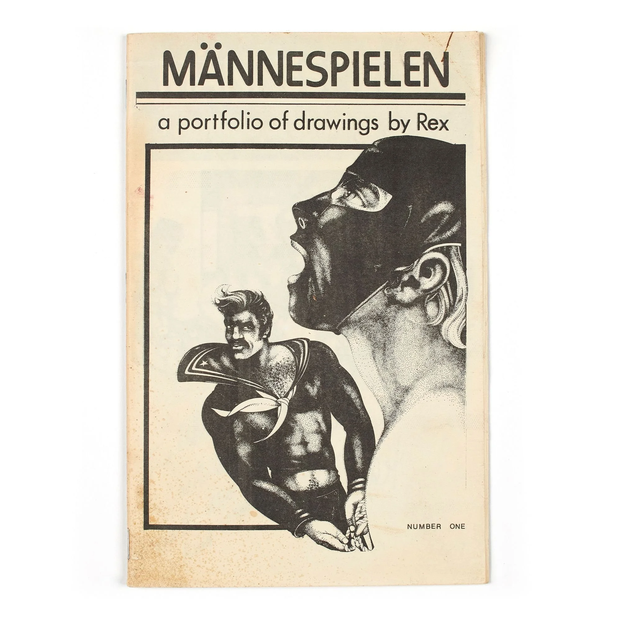 "Mannespielen (a portfolio of drawings by Rex) Number One." June 15, 1975. Inscribed by Rex in pen. Thirty pages. Offered in AFTER DARK on 22 May 2025.