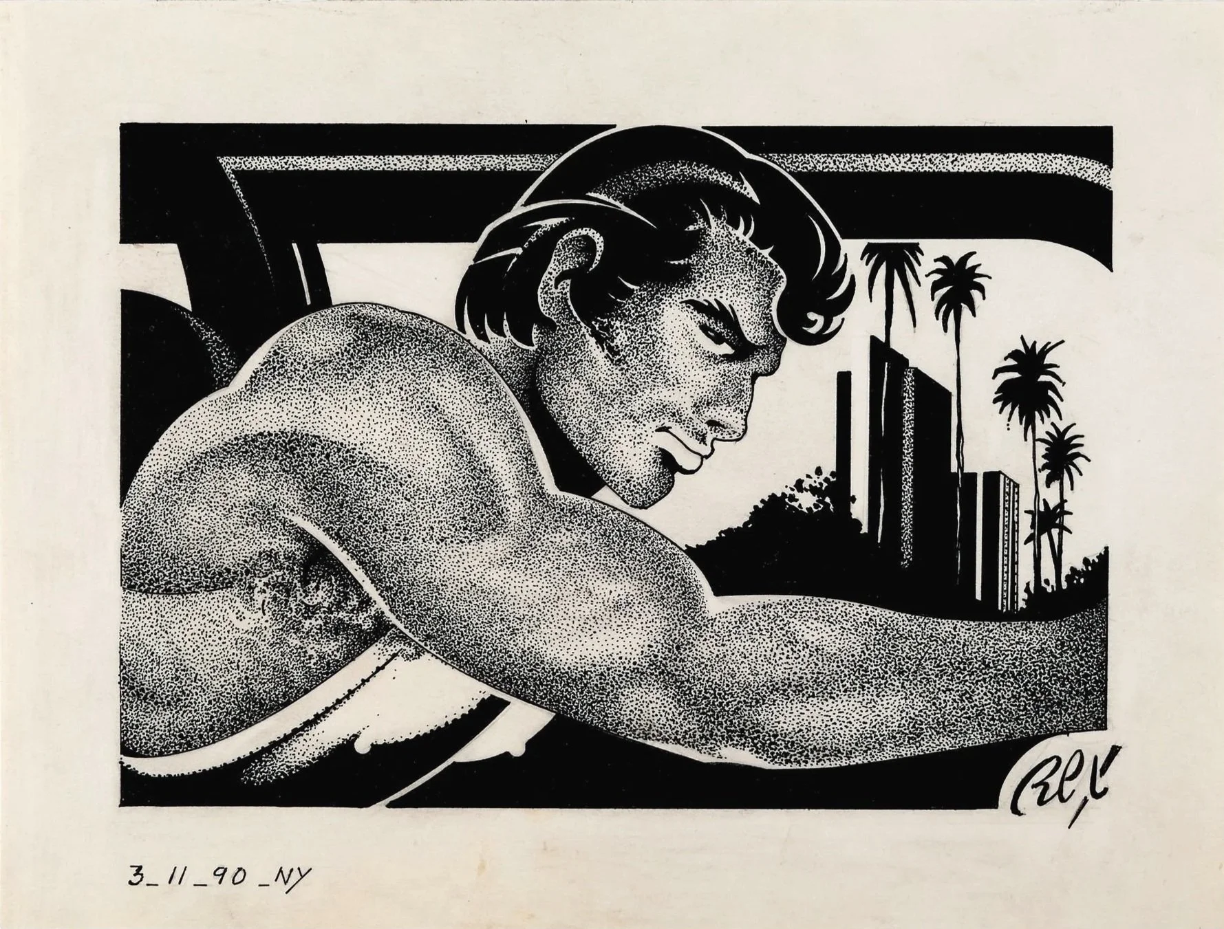REX. Ink and graphite on paper. 1990. Offered in AFTER DARK on 5 November 2025.
