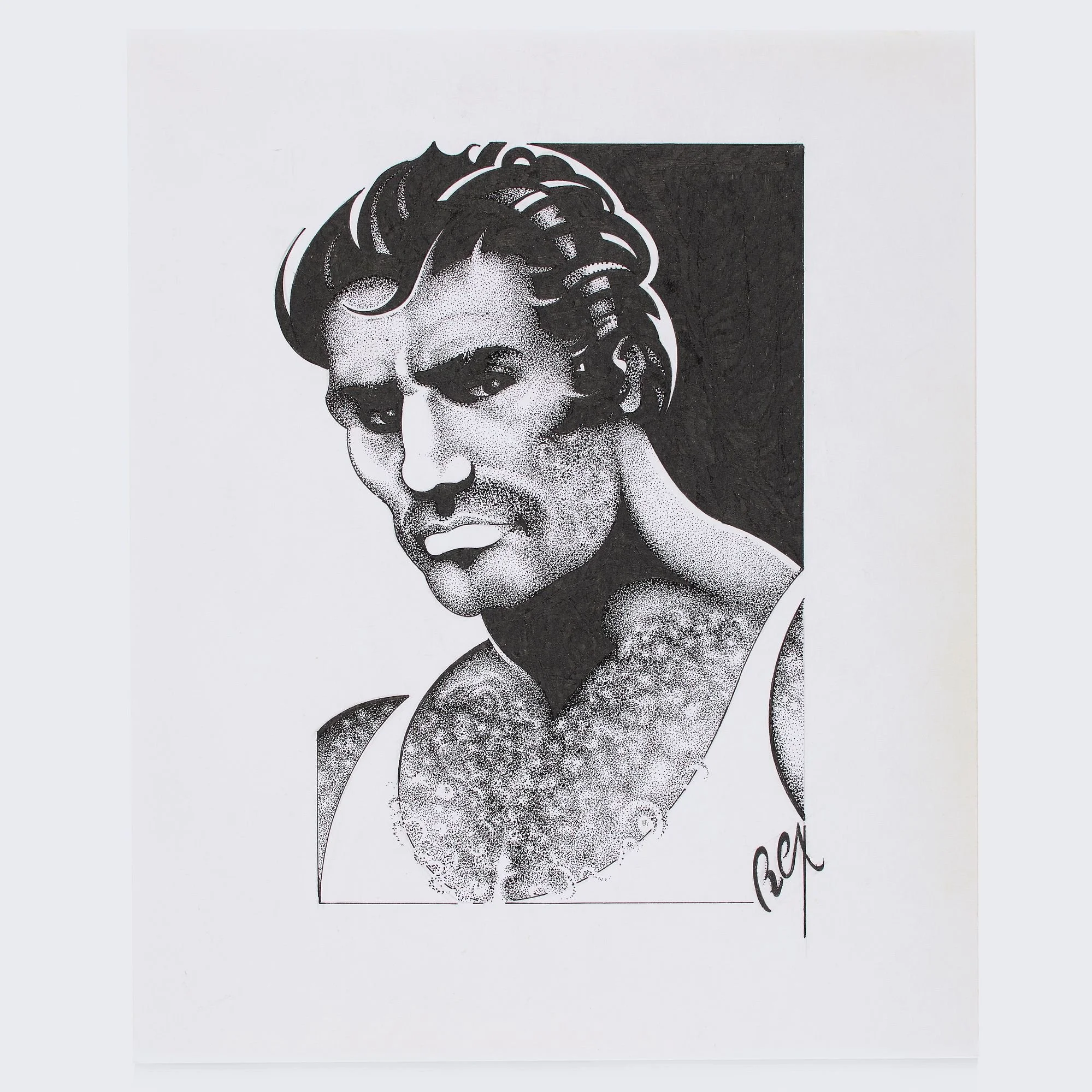 Rex was an American illustrator whose black-and-white pen-and-ink drawings presented and codified the visual aesthetic of the gay S&M and leather subcultures during the 1970s and 1980s. Based in San Francisco, Rex’s artwork is defined by depictions of masculine archetypes such as policemen, prison guards, and bikers, often exploring the raw and unapologetic elements of gay male sexuality. Through his art, Rex documented the pre-AIDS cruising culture of dive bars, alleyways, bathhouses, and motels in New York and San Francisco.