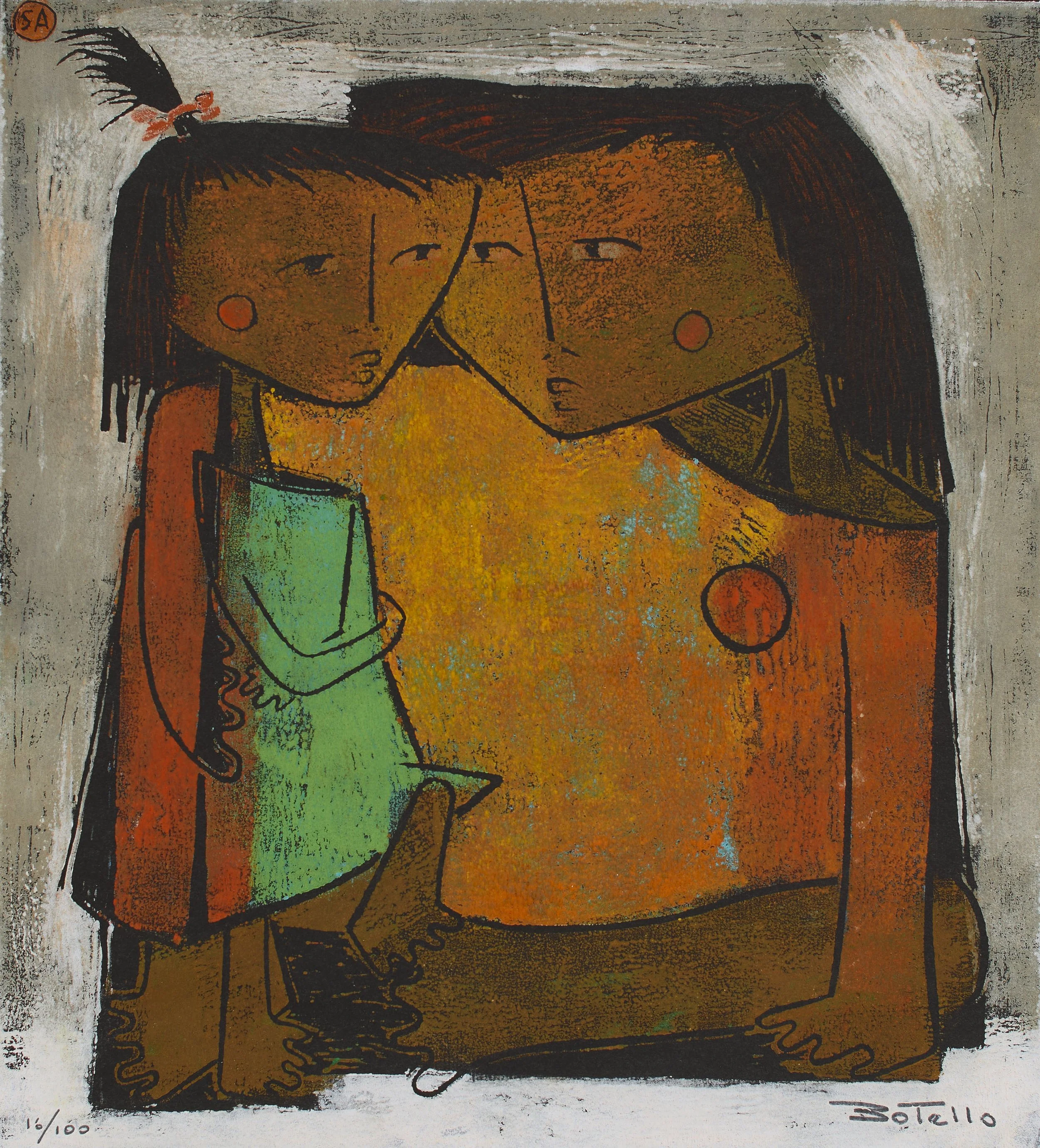Lot 88: Angel Botello (Puerto Rican, 1913-1986). Linocut on black paper.
